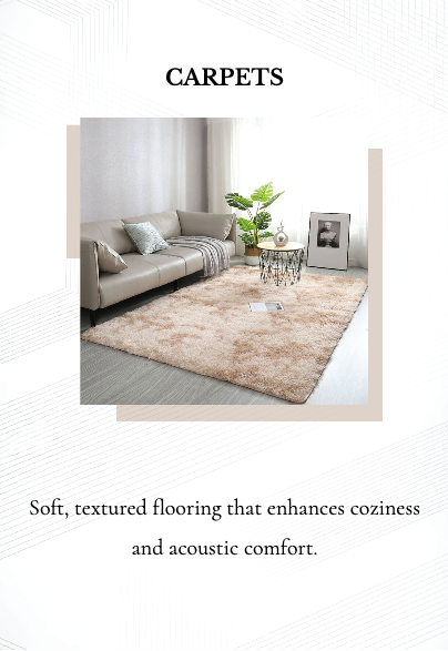 Soft, textured flooring that enhances coziness and acoustic comfort.